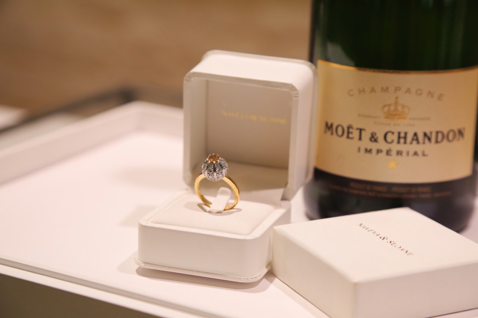 Naveya & Sloane spent some time on the design and craftsmanship of the ring to ensure it captured a true representation of both Ana’s love for tennis and the Moët & Chandon brand.