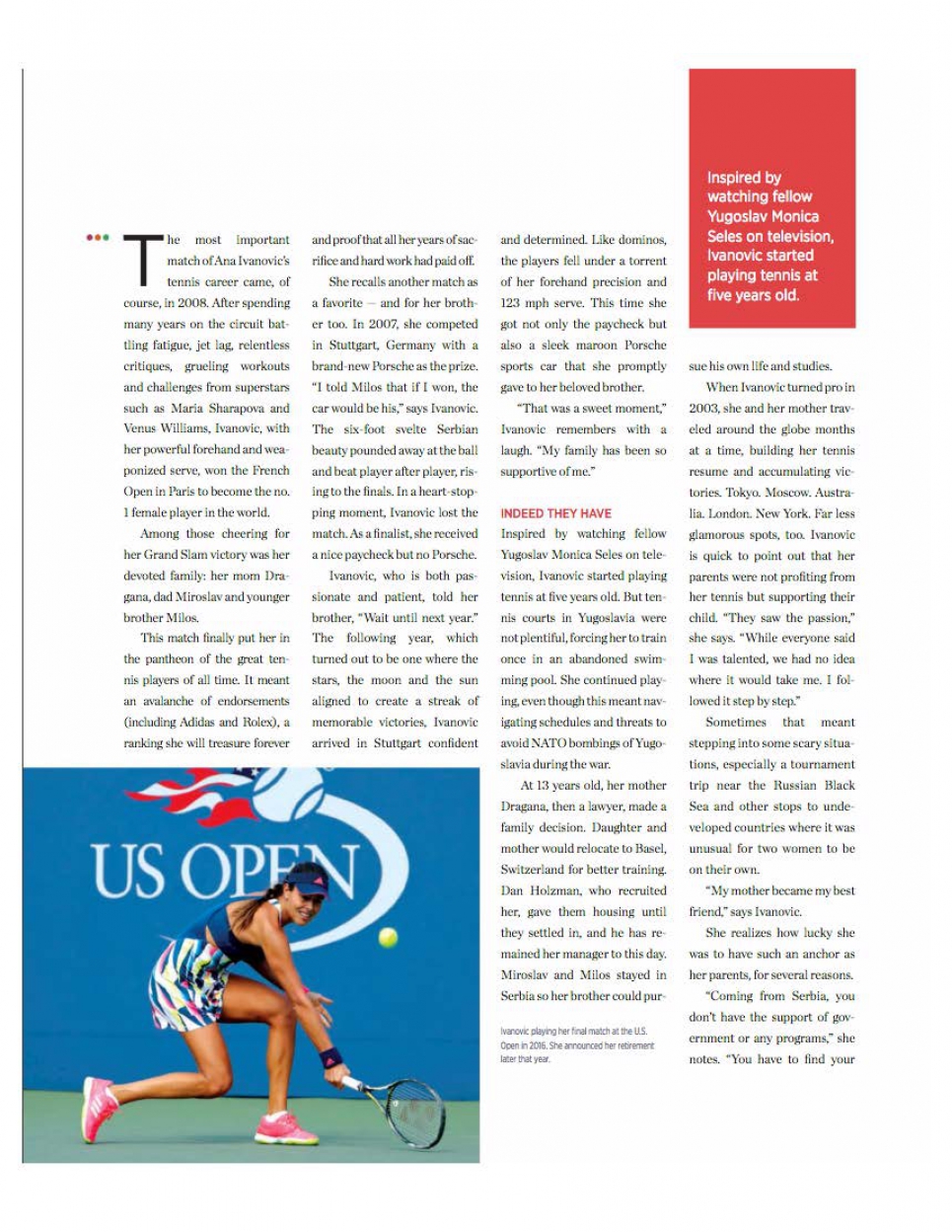 “That was a sweet moment,” Ivanovic remembers with a laugh. “ My family has been so supportive of me.”